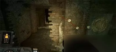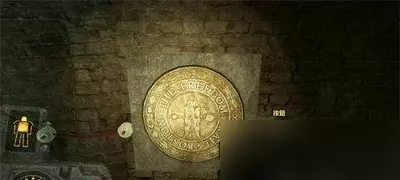 2.瞄准星在左侧点击,自由路环逆时针转动,右侧顺时针转动。上面的红色箭头指向字母的位置。每次输入字母,按中心按钮,依次转动圆环,让指针指向“R,A,I,L,R,O,A,D”,并逐一按下按钮,即可打开左门。