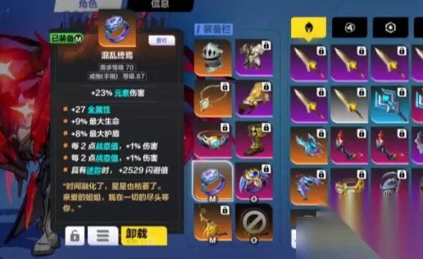 4、戒指 推荐:终焉戒指 主要属性每2点战意值加2%伤害配合头盔使用。