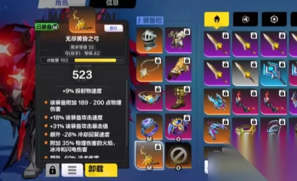 5、武器 推荐:无尽黄昏之弓 这个是主要的装备,增加投射物的伤害以及,附加元素伤害。