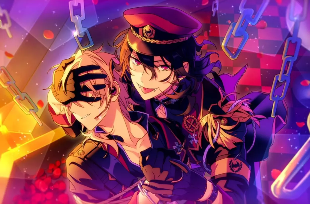 这是一则《偶像梦幻祭》相关内容,展示了角色朔间零和对他抱有负面态度的角色共同演绎歌曲《恋心收藏家》的舞台画面,呈现了该歌曲的表演场景。