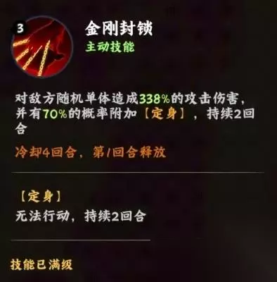 在游戏的设定框架中,S级忍者相较于那些站在品质巅峰的顶级存在,确实面临着一些先天不足,最为明显的短板就是缺少一个被动技能,这一缺陷在游戏后期的发展进程中逐渐凸显出来,但是S级忍者在游戏前期却能凭借自身的特色优势大放异彩,漩涡玖辛奈便是这类能够在前期崭露头角的典型代表,她的主动技能金刚封锁,带来的输出数值不低。 不过这个技能虽然是攻击技能但是不能选择目标,而是对随机单位造成输出效果,这一次的伤害高达338%攻击力数值,这一数字在实际战斗中,足以让敌人感受到压力,无论是面对脆皮型角色还是有一定防御能力的单位,都能造成可观的伤害效果,更为令人惊叹的是该技能在造成伤害的同时,还有70%的几率为目标附加定身效果,并且这个定身状态能够持续两个回合之久。