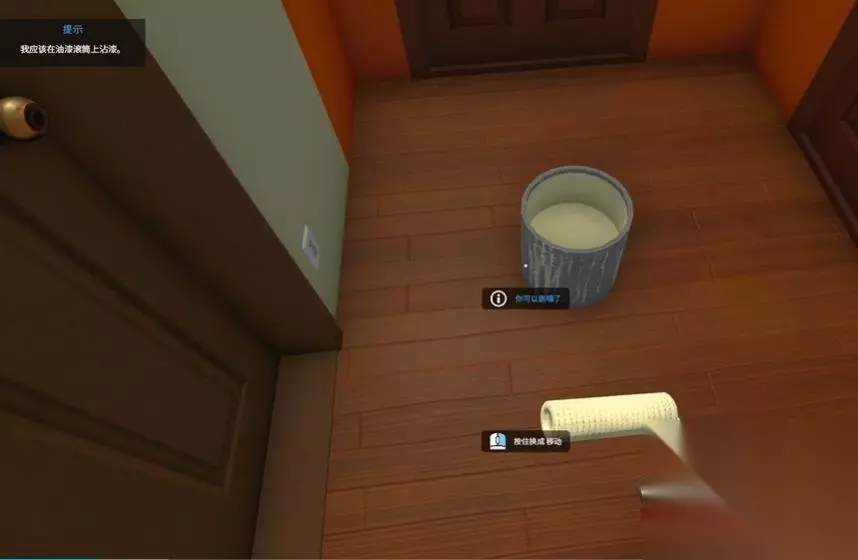买完油漆后,放置在离墙面近一点的距离,按鼠标右键将工具改为滚轮,点击油漆蘸取涂料,再点击墙面即可开始工作了,如果是刚刚进入游戏的玩家,当下刷墙的工作技能只有1点。在多刷几面墙后可以对工作强度进行升级。当有提示可以升级时立即去升级加快刷漆的速度。刷漆的进度条满了的时候也就说刷漆的面积达到了任务要求。