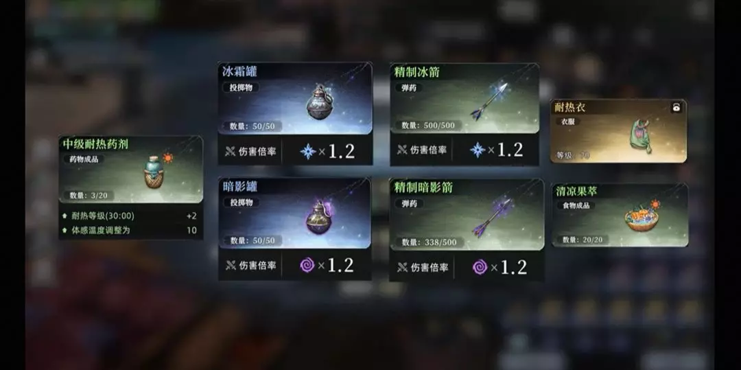 2、整体地图与深渊14相近,炎热环境准备中级耐热药剂、暗影罐、冰箭、暗影箭、耐热衣、清凉果萃。