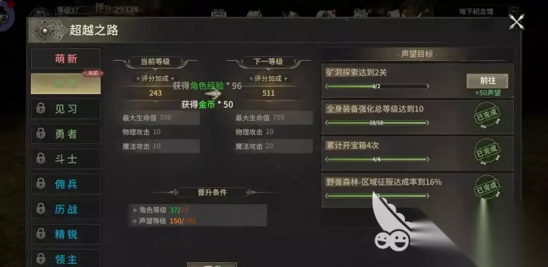 游戏中,新手时期大家可以跟随主线任务来进行发展,跟随着主线任务一起冒险,可以更好的帮助大家,来了解玩法以及操作,还可以获得相关的经验以及金币,还有装备,同时还有精彩的故事激情可以帮助大家更好的融入到游戏之中,来不断的进行升级,游戏中除了主线任务之外,玩家们也可以来完成日常的活动,包括一些副本以及答题活动,还有挑战boss等等,内容非常丰富。