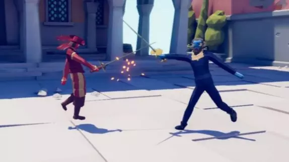 这是《全面战争模拟器》的游戏内容,展示了玩家操控三名剑师类单位在竞技场对战其他阵营单位的过程,体现出这三名剑师单位的强悍战力。
