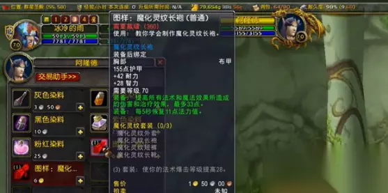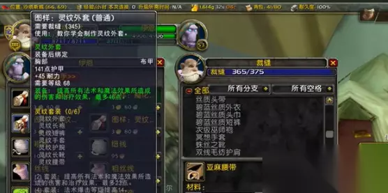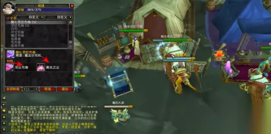 360 - 375级:最后来到影月谷找NPC阿隆德学魔化灵纹外套,造10件需要用60张魔化布卷、20个蜘蛛丝和10个符文线到370。最后的5级是用刚学的魔化外套和长袍直接冲满即可。