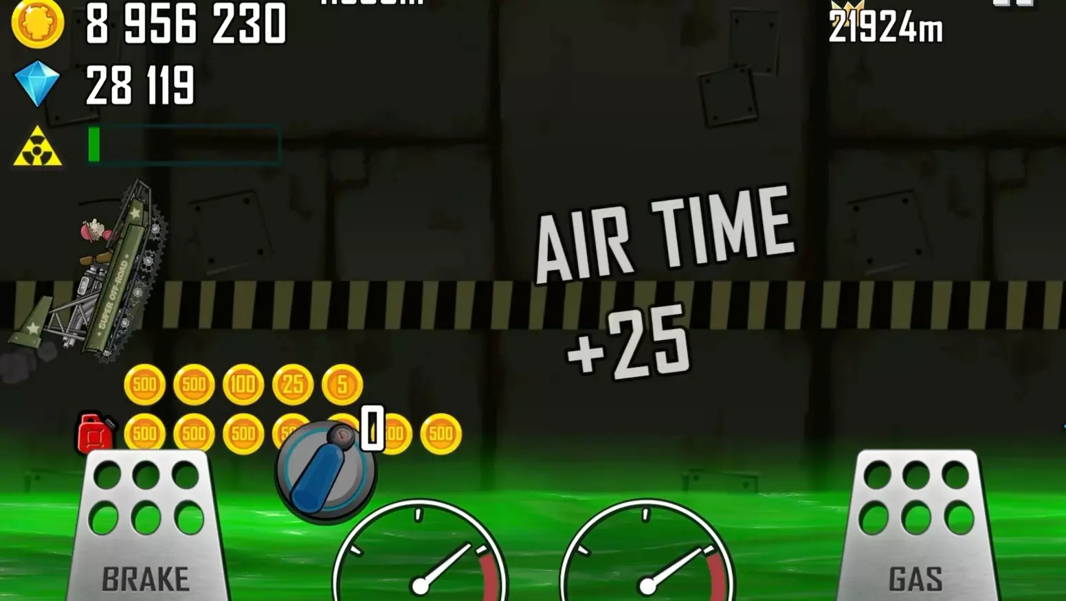 这是《登山赛车》的游戏实况,展示了使用超级越野坦克在诸神黄昏关卡跑出25896m的过程,画面呈现了关卡内的特殊地形与行驶挑战。