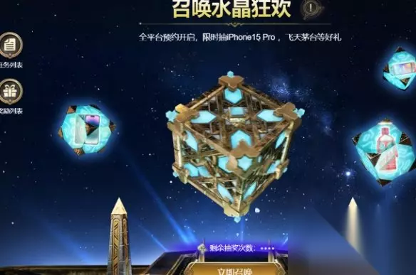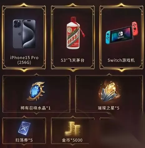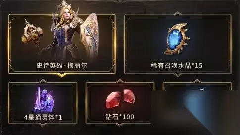 4、奖励包括:英雄经验药水×20000、钻石×100、4星通灵体×1、史诗英雄梅丽尔、稀有召唤水晶×15。 5、并且完成对应的守望和召唤任务,还能获得额外的抽奖机会。