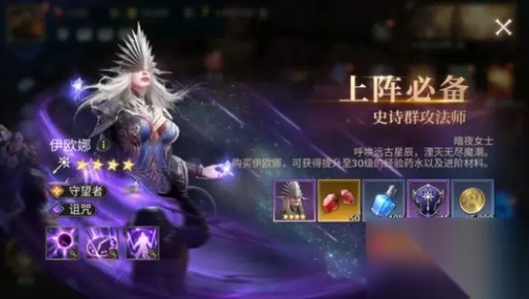 八、氪金攻略 性价比排行:6元礼包>召唤月卡>钻石月卡>成长基金>其他礼包 详细介绍 1、6元礼包:伊欧娜的馈赠,购买后可获得可媲美五星传说英雄的法师英雄伊欧娜、50钻石和其他养成道具。