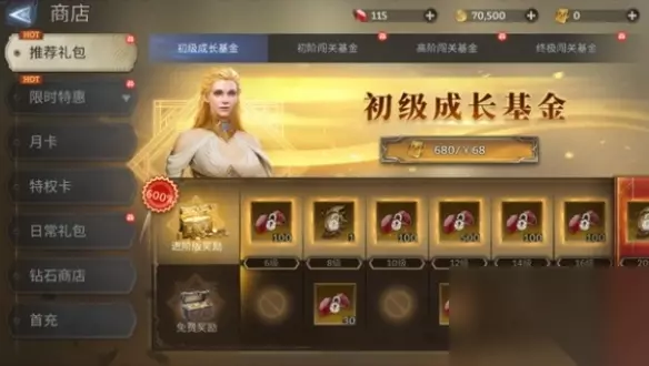 4、成长基金:成长基金68元,升到满级可获得900钻+2金抽,折合2/蓝抽,28/金抽。