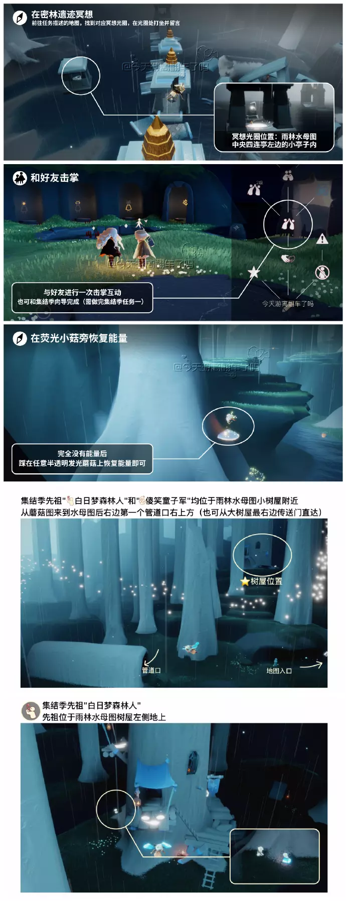 《光遇》游戏中每天的每日任务及大蜡烛的位置都不相同,玩家完成每日任务及收集大蜡烛都可以得到丰厚的兑换奖励,奖励可以用于兑换各种动作及道具,不过很多小伙伴不知道每日任务怎么做,又懒得自己去找大蜡烛的位置,我们汇总了每日任务的完成攻略以及蜡烛位置,一起来看看吧!