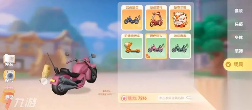 二、载具获取途径介绍 1、新手车、小电驴可以在新手任务过程中获得; 2、粉色和绿色摩托车需要在小镇的商店购买,每辆3000贡献币; 3、黑色摩托车通过购买超拉赠送; 4、圣诞摩托测试服中完成七天签到即可获得; 5、罪恶的年兽车需要通过抽扭蛋获得; 6、猪猪减肥车目前已经绝版,以前是8级超级拉姆赠送; 7、黑色和粉色跑车是通过氪金条获得,目前已经绝版;