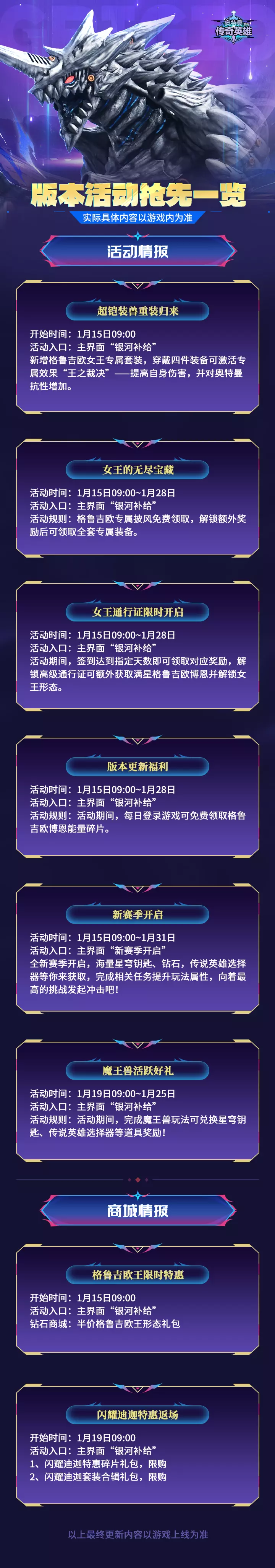 《奥特曼传奇英雄》版本活动抢先一览