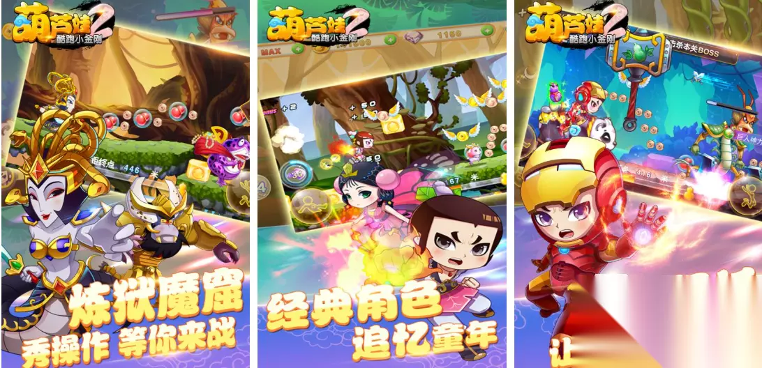 本作是款不联网也能挑战的葫芦兄弟主题游戏,再现经典的剧情塑造和葫芦娃的人设都是亮点,设定了回合制PK的理念显得参与感十足,与葫芦兄弟们一起斩妖除魔的剧情塑造更是点睛之笔,属性点可以自定义设定让葫芦娃的实力大增,还设定了红装系统和宝石镶嵌的玩法,单机漫改手游爱好者试着在葫芦娃的世界中冒险吧。 手机扫码下载233乐园APP预约 预约订阅最新动态 优先233乐园APP下载 2、《葫芦娃2酷跑小金刚》