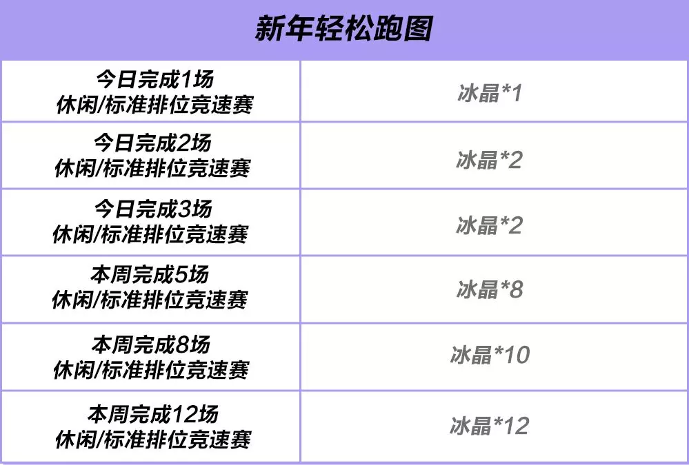 活动期间,只要完成指定场数的休闲/标准排位竞速赛,就能稳稳拿下冰晶奖励!