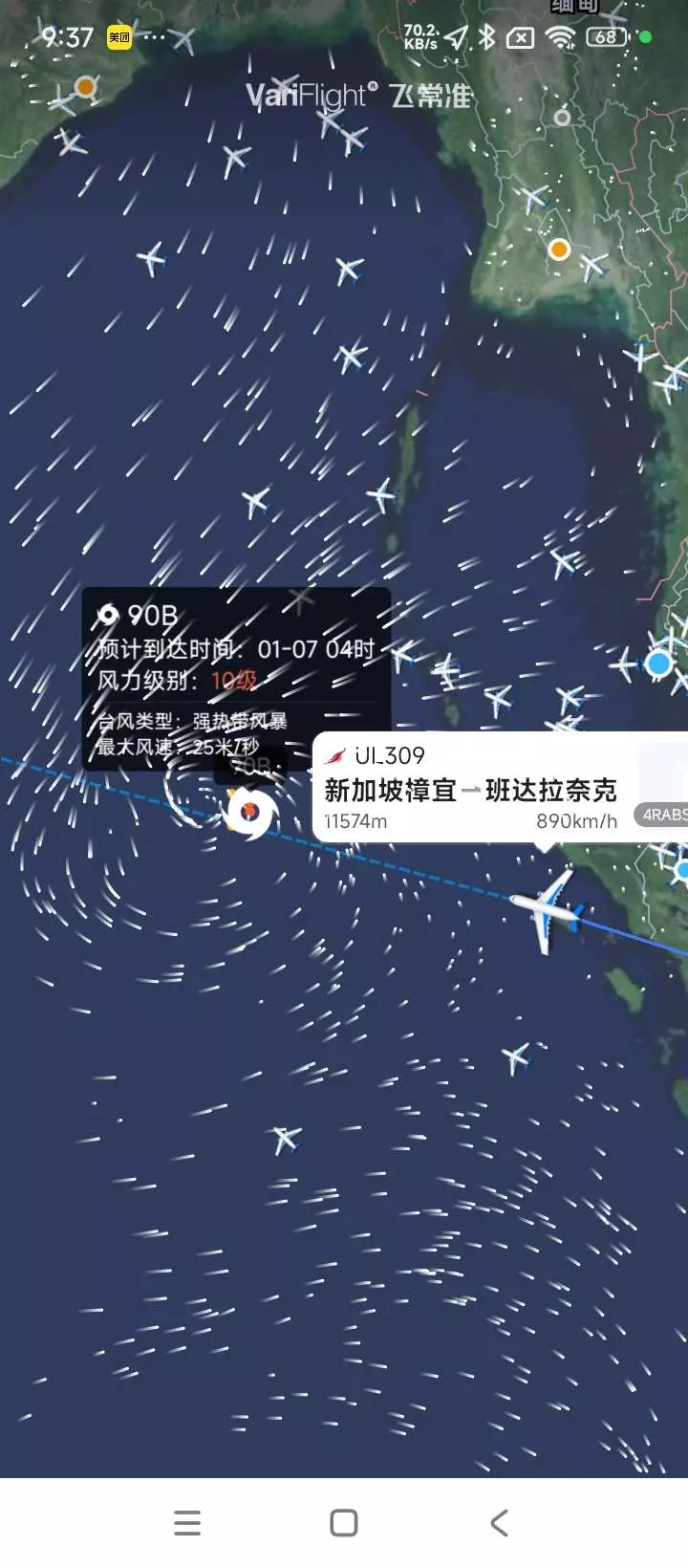 这是我最后一个飞友作品了,你们看看这个航班得穿过风暴,那不得风切变警告哐哐响