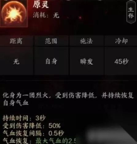 5、原灵:生存技能,减伤并恢复气血