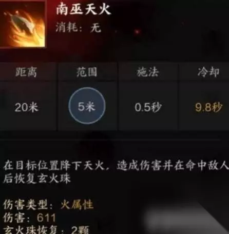 3、南巫天火:范围技能,恢复玄火珠