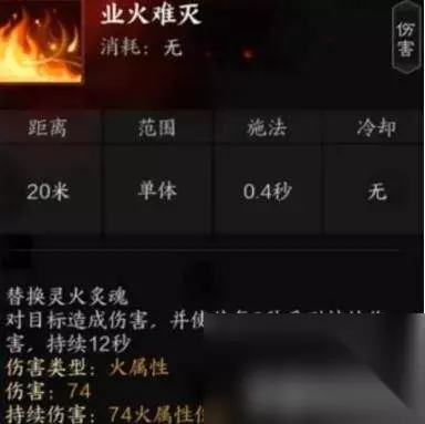 2、业火难灭:单体DOT技能,替换灵火炙魂