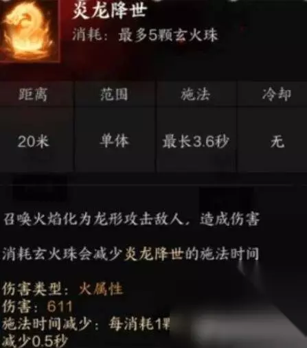 天书技能 1、炎龙降世:消耗炎火珠进行输出
