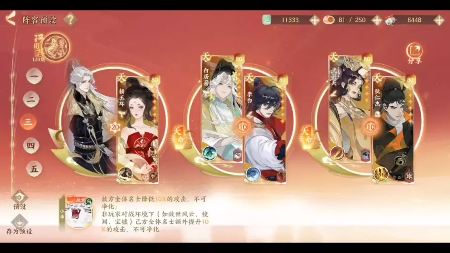 阵容配置: 清明:月魔兔 3灭的前提下星越多越好 伊邪那美:攻命/攻暴 元兴寺土蜘蛛 速度>150 孔雀明王:攻攻爆伤 狂骨土蜘蛛 148<速度<150 神无月…