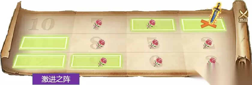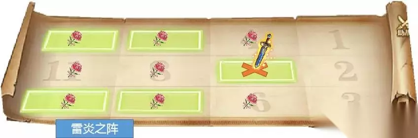 魂玉消耗:3 技能说明:对敌方横排三格造成自身攻击力高额百分比的技能伤害,同时额外附加固定伤害; 附加状态:加速,增加自身最多20%的速度,持续两回合。 攻击范围示意:
