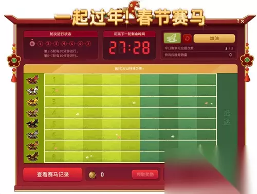 2月11日起至3月3日,玩家参加一起过年!春节赛马活动,消灭等级范围内怪物获得春节赛马应援券,使用后可指定1次加油助威的赛马,根据比赛结果可获得丰厚奖励!