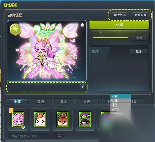 在各怪怪栏中鼠标右击,即可额外进行各种操作。在召唤状态下无法使用提炼、锁定、封印的功能。