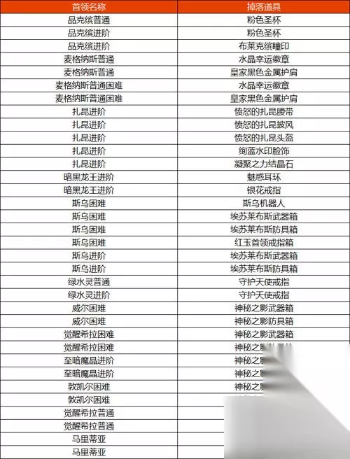 首领掉落道具的爆率提升,具体如下:
