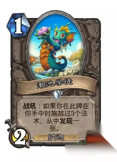 潮池学徒是一张很灵活的卡,下限可能就是攒一个硬币,上限可能就是从121的小身材里掏出一整个宇宙(星空投影球),更多情况下能记录到的应该是混调师的混剂,和一些通过地标发现的小法术。 由于大法术法的卡组特性,以及构筑中冲浪章鱼和畅游海底的存在,这意味着法师要舍弃,低费高质量的法术,这时就需要一些衍生资源以渡过弱势的前期,混调师和诚信商家格里伏塔的战吼效果就很适合大法术法,灵活且低费的衍生法术,同时可以激活新卡潮汐之地,使得法师的前期不至于有太大的资源压力。 由于卡组的主要发力combo是冲浪章鱼和畅游海底的配合,在没能摸到这套combo前,我们需要混住关键回合,避免在打出combo前,失去太多的血量,因此护甲商贩和奥术工匠是不错的选择。最理想的情况就是能够五费使用冲浪章鱼,六费畅游海底,抽到的不论是火焰之地传送门,海啸,还是夕阳漫射,都是一波很可观的节奏。至于抽上来后该怎么办,那再有另外的combo