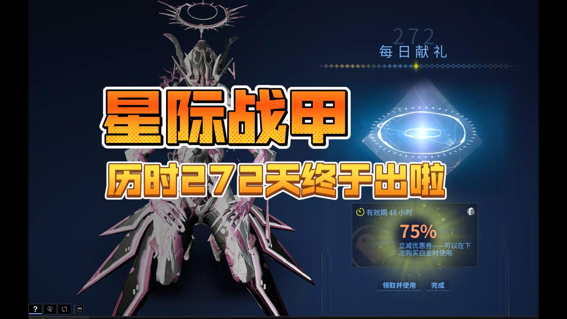 玩家证实星际战甲国际服的75%折扣为真,该折扣是购买白金的立减优惠券,有效期48小时,能在下次购买白金时使用。