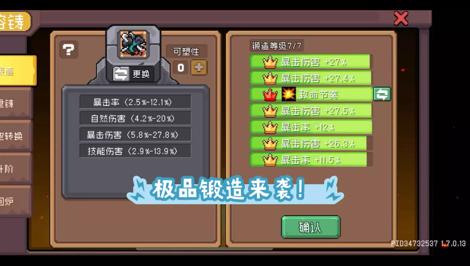 这件运气还算很欧,45次锻到第六条。13张算能接受的范围哈