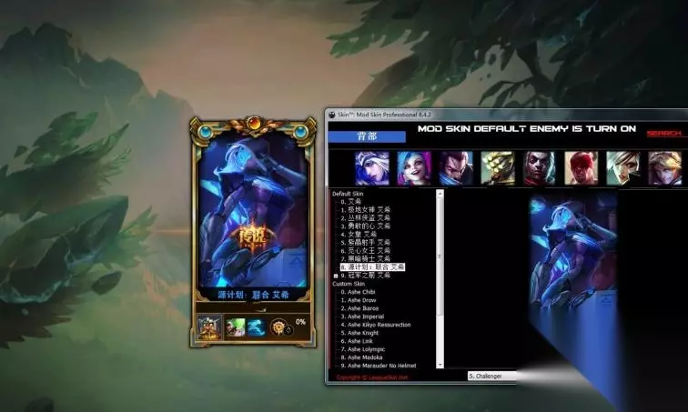 英雄联盟简称LOL,是一款风靡全球的竞技游戏,国服至今已有八个年头,这期间推出了无数精美的皮肤,LOLskin换肤大师能够将这些皮肤全都免费供用户使用,还能修改的队友皮肤和赛季段位边框哦! LOLskin换肤大师使用方法 1.下载压缩包,将文件,全部解压。 2.运行LOLPRO.exe文件 3.进入英雄选择界面,然后选择皮肤即可。 4.国服更新后,本软件大概会晚3天左右,当发现换不了皮肤时,可重新前往本站下载。 LOLskin换肤大师