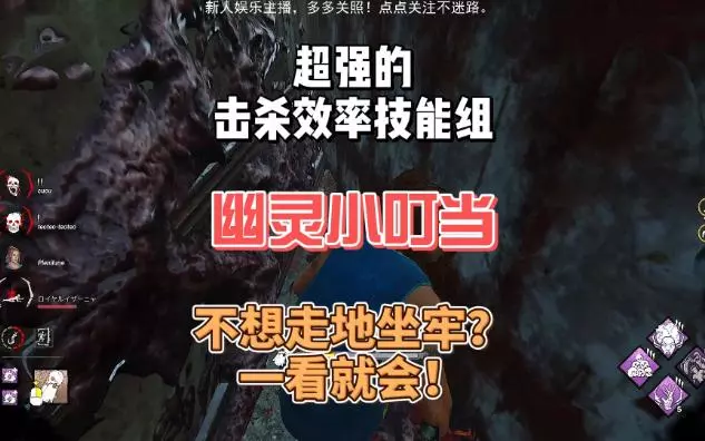 这是《黎明杀机》的游戏内容,以第一视角展示屠夫幽灵小叮当的无声敲钟偷袭流打法,该打法能提升幽灵小叮当的强度,助力玩家更好地追击逃生者。