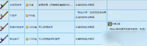 《星露谷物语》鱼竿获取方法: 一、基础鱼竿 竹鱼竿(免费获取) 游戏第二天(春季星期二)会收到威利的邀请信,需在当天17:00前前往海滩触发剧情,完成对话后免费获得。 若错过时间,可在威利商店以500金购买(功能相同)。 训练用鱼竿(可选) 威利商店售价25金,或满足条件(春季28日后、钓鱼0级、晴天上午)时威利会主动赠送。 仅能钓基础鱼类,适合新手练习操作。 二、进阶鱼竿 玻璃纤维鱼竿 需钓鱼技能达到2级 → 威利商店售价1800金。 可装备鱼饵(如虫肉),但无法使用渔具。 铱金鱼竿 钓鱼6级后解锁,售价7500金。 支持同时使用鱼饵和渔具(如陷阱浮标)。 三、顶级鱼竿 高级铱金鱼竿 需所有技能满级后,在精通山洞选择“钓鱼精通”奖励获得。 1.6版本丢失后可花费25000金重新购买。 功能:可同时装备1个鱼饵 2个渔具(效果叠加)