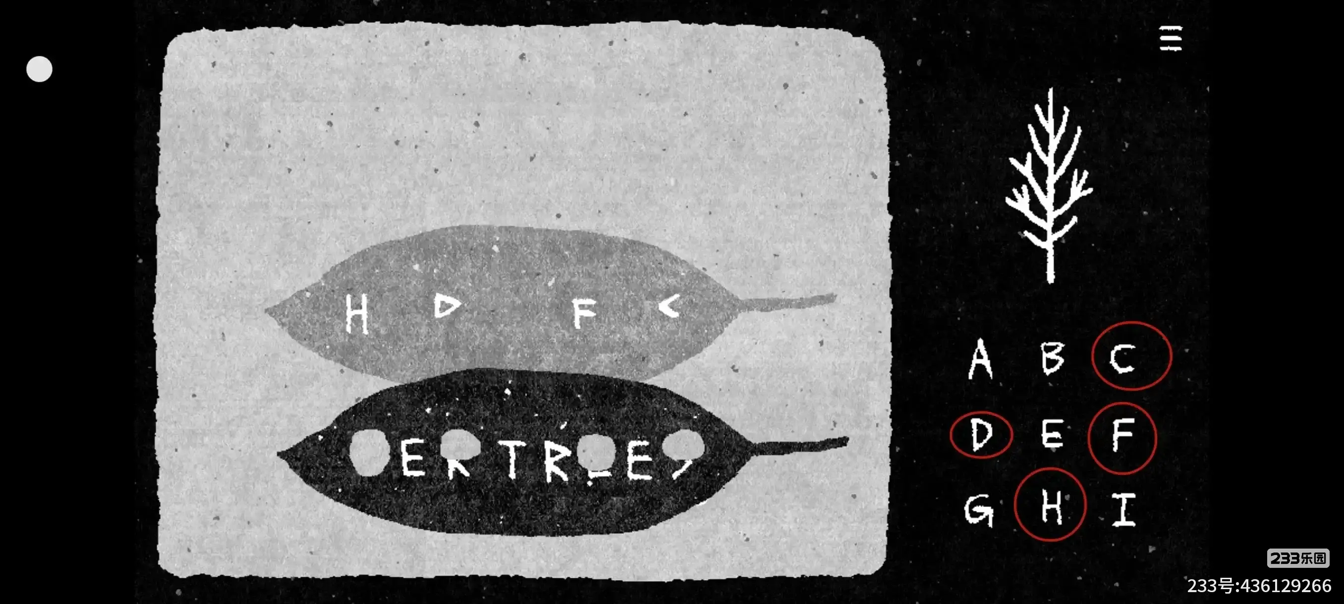 开局教程把叶子拖开就能看见:H→D→F→C