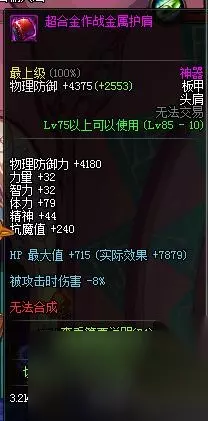 就我个人的观点来看,领主粉就那些附加属性或者附加特效或者外观党的收藏品外都没啥用。比如说机械龙的精髓,如果陨石比较多,换一个确实挺不错的,但是也没有必要去做。85级属强石头40w+,远古出产的双属强魂魔石30w左右都已经是非常便宜了。 在领主粉的推荐上首先说减防装必备之一超合金作战金属肩甲,这里建议经济富裕一点奶爸奶妈辅助之类的做做。有一套减防装的时候,在悲痛的布冯那里,可以从容的在篮圈外面散步,这种疯子确实能成功,其他需要什么装备这里就不多说了。184遗忘陨石。