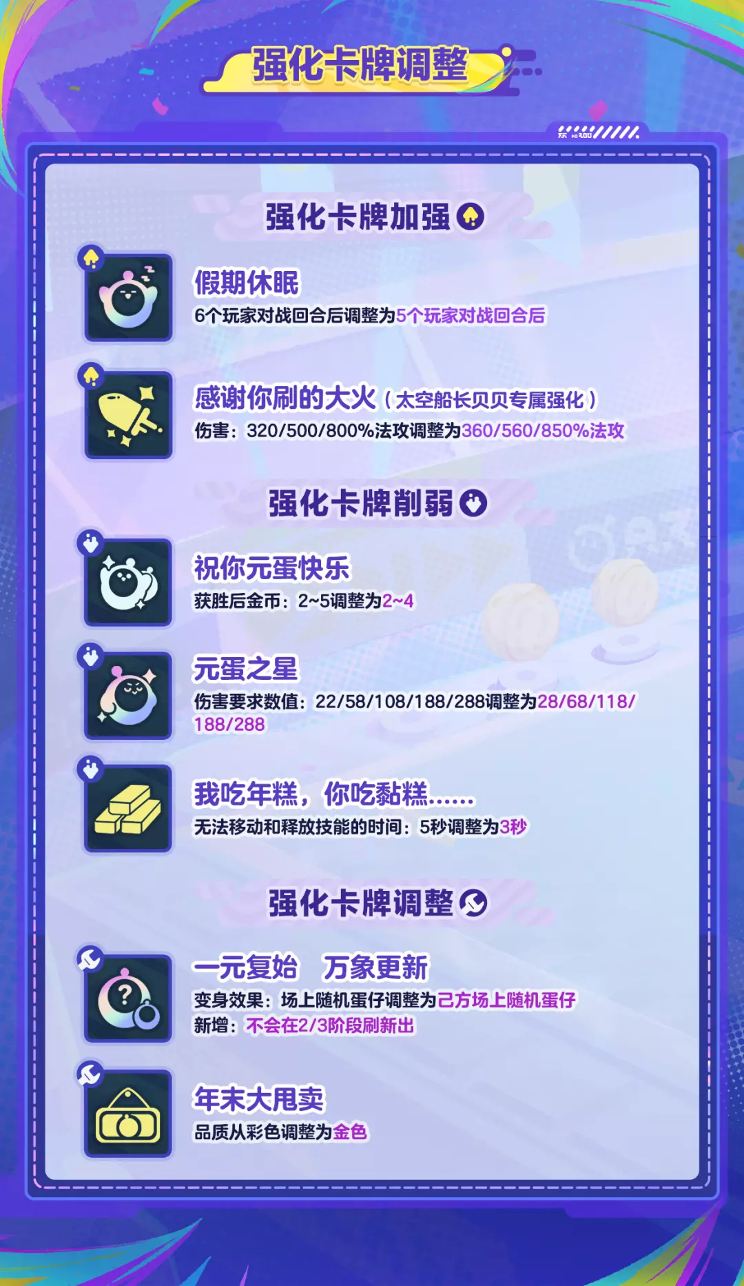 碰碰棋对部分蛋仔、羁绊、强化卡牌
