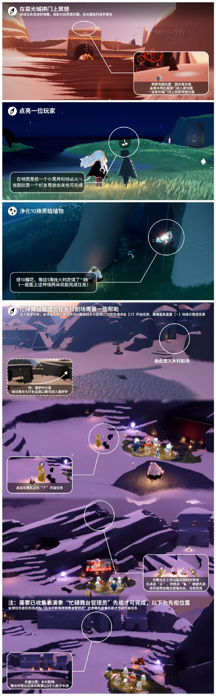 《光遇》游戏中每天的每日任务及大蜡烛的位置都不相同,玩家完成每日任务及收集大蜡烛都可以得到丰厚的兑换奖励,奖励可以用于兑换各种动作及道具,不过很多小伙伴不知道每日任务怎么做,又懒得自己去找大蜡烛的位置,我们汇总了每日任务的完成攻略以及蜡烛位置,一起来看看吧!