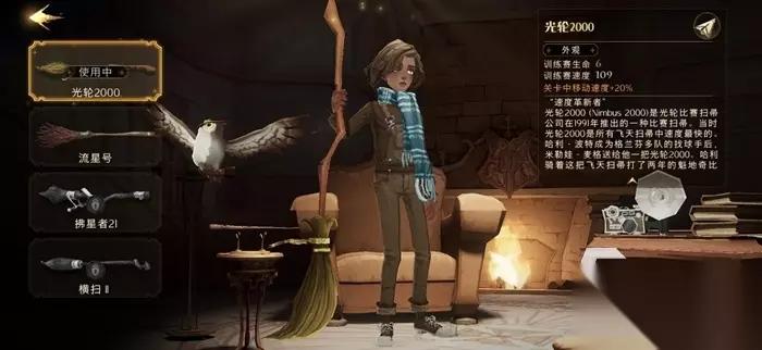 另外,在我们来到对角巷并且解锁开启魁地奇精品店找NPC罗宾对话的时候也可以看到商品列表中有光轮2000,而除了光轮2000之外也有拂星者21以及横扫II这两个飞天扫帚可以购买,售价分别是300宝石以及120宝石。