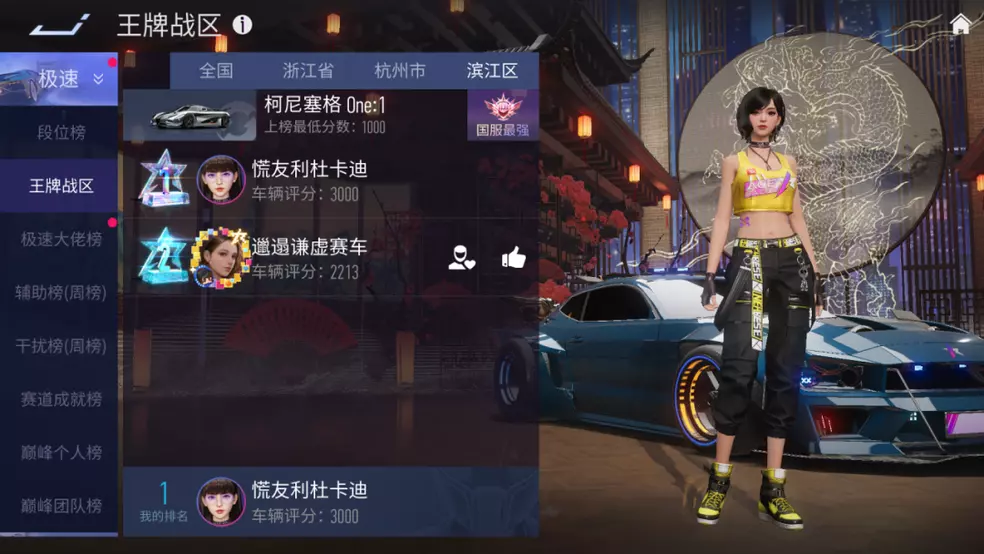 晋级传奇车神后,段位全国榜单前1000名的车手将会开始计算排名并进行展示。赛季结算时,处于巅峰车神前1000名的玩家将会收到代表排名的专属称号。