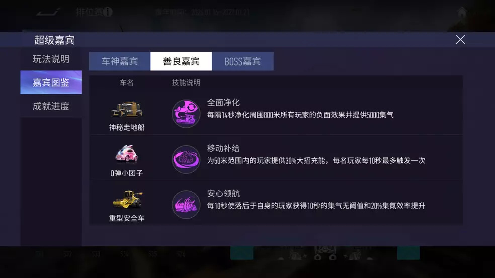 [2] 善良嘉宾:赛道上的移动补给站!在范围内自动获得大招充能、解除负面效果或提升后追效率。