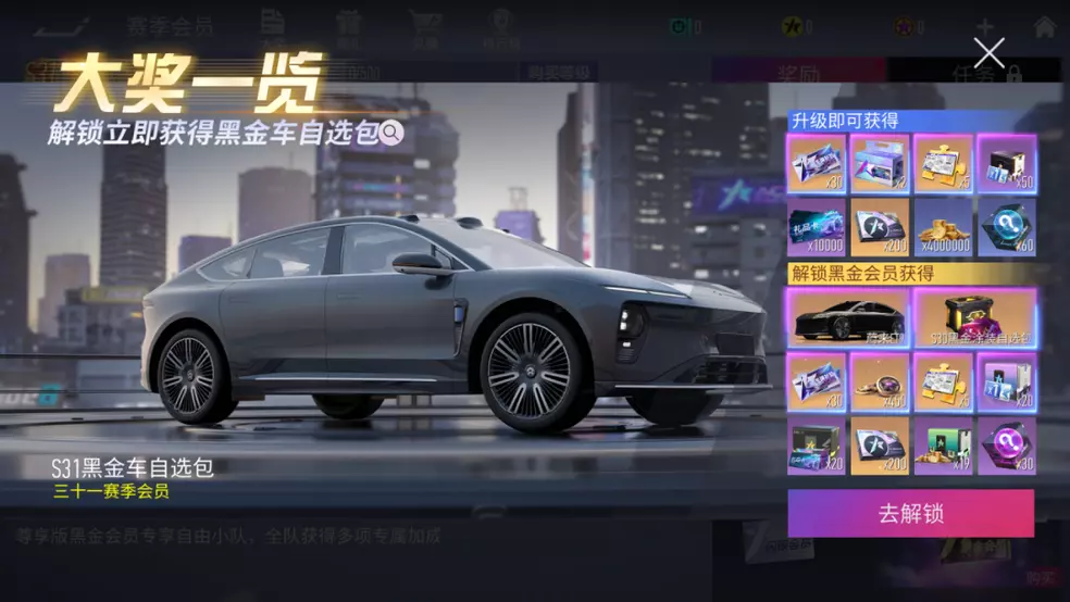 黑金会员车手升级赛季会员等级可以额外领取王牌补给券、传说蓝图碎片、纪念币等多种资源奖励!