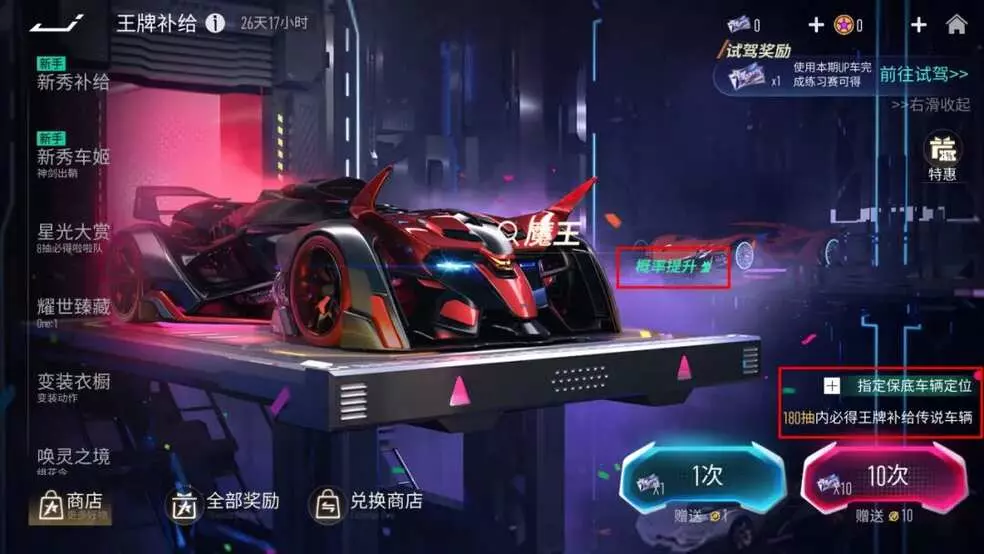 1月16日起,王牌补给将开启全新活动!传说车辆『魔王』限时概率提升66%!