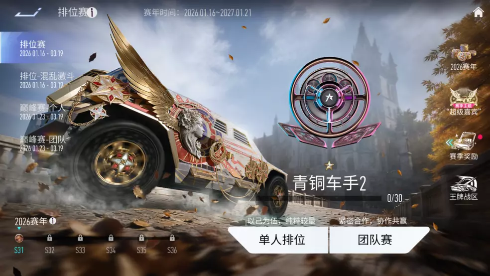 首个2026赛年包含S31~S36共6个赛季,你将可以看到本赛年中每个赛季的段位达成情况。
