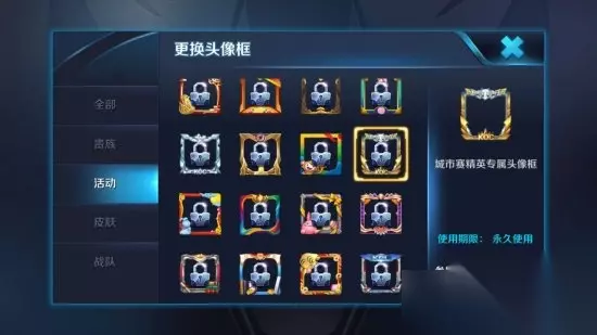 城市赛精英专属头像框是城市赛专属头像框升级版,通过海选出来的战队再次通过分配带四个大区pk,最终获得4强的战队可以获得这个头像框,算算仅为20人。
