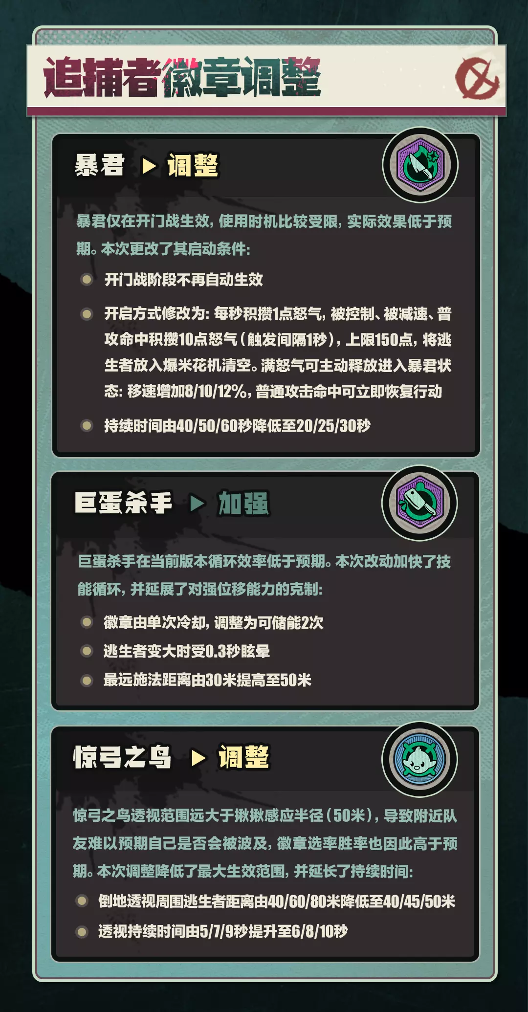 【逃出惊魂夜】新赛季版本平衡性改动