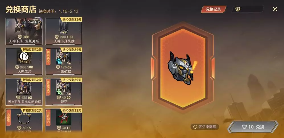 收集一定数量天神之印可在兑换商店兑换天神下凡 亚托克斯、无畏队旗-天神下凡队旗、动态头像-天神之光等奖励。