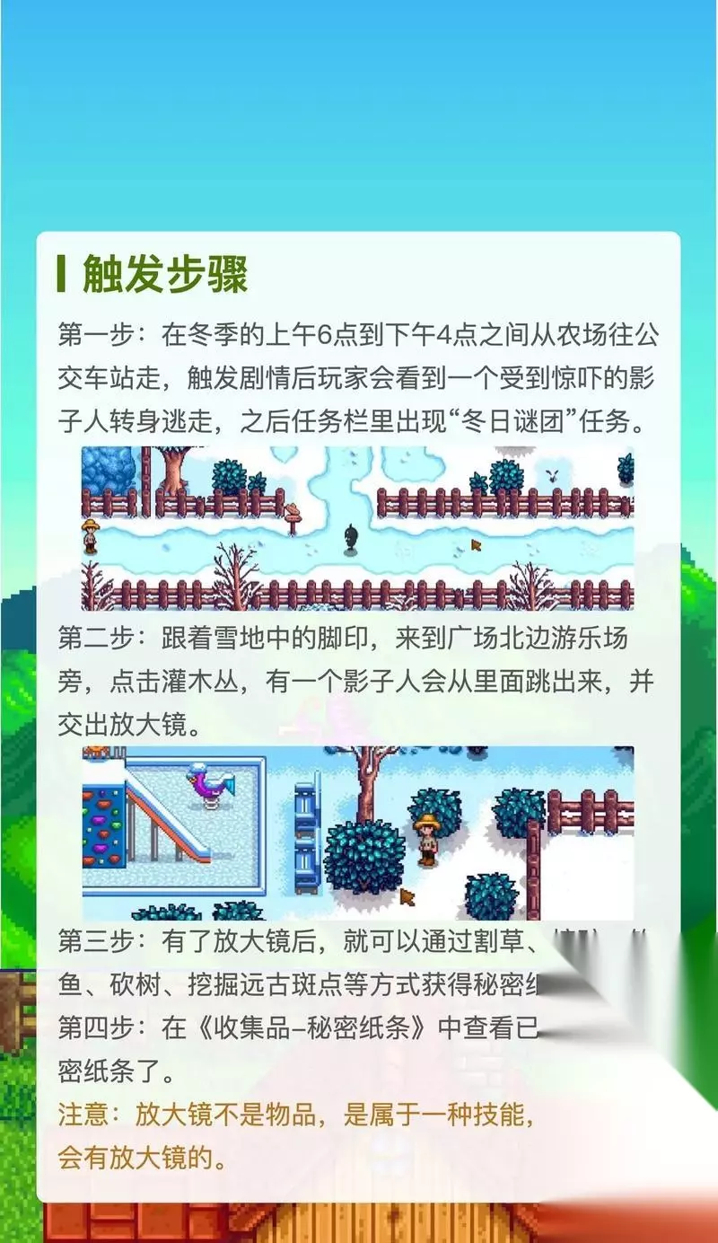 本文目录一览 1、星露谷物语秘密纸条的作用解析 星露谷物语是一款备受喜爱的农场模拟游戏,玩家可以在游戏中体验种植、养殖、交友等各种农场活动。然而,除了这些基础玩…