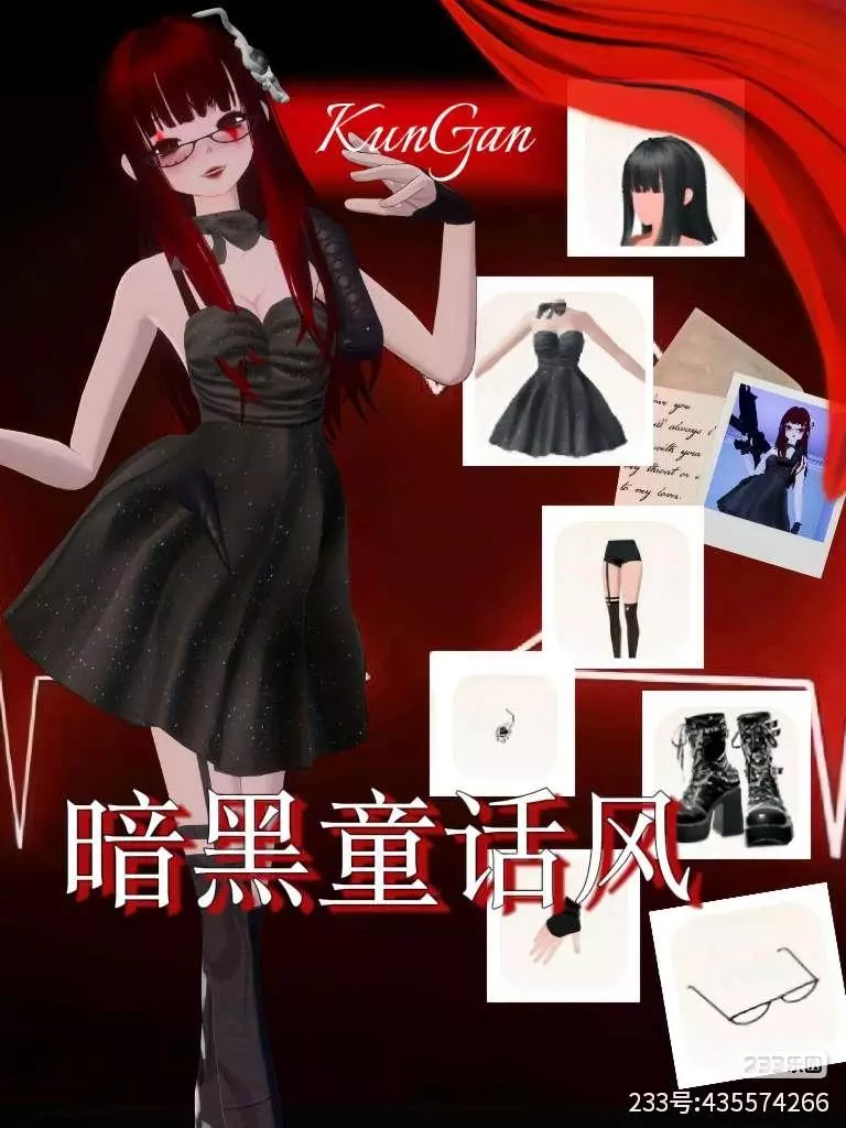 红黑撞色的背景、散落的穿搭部件与角色照片,像一份“病娇少女的收藏清单”,暗示着她对穿搭和对喜欢的人一样,有着绝对的掌控欲。整体视觉呈现出“把爱意做成标本,把危险藏进裙摆”的暗黑童话氛围。